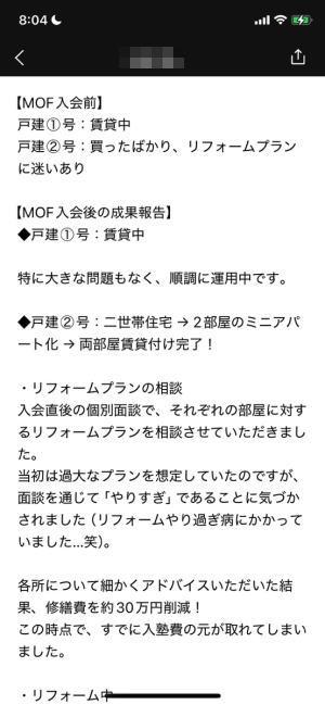 MOFに入会してからは、具体的なアドバイスを受けながら実践できるようになり、一歩ずつ進めたと感じています。